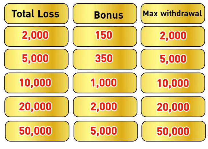 🍃🍁ဆုံးရႈံးမႈ Rebate ဇယား🍃🍁