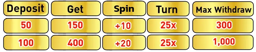 - ရရွိေသာေဘာနပ္သည္ 25 ႀကိမ္ေရ ကစားၿပီး အျမင့္ဆုံး 10,000 ဘတ္ ထုတ္ယူႏိုင္ပါသည္။
