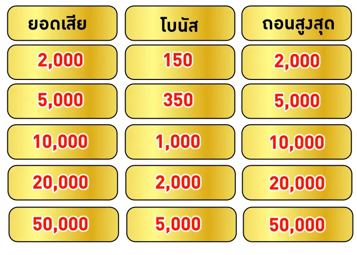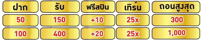 - โบนัสที่ได้รับทำเทิร์น 25 เท่า ถอนได้สูงสุด 10,000 บาท